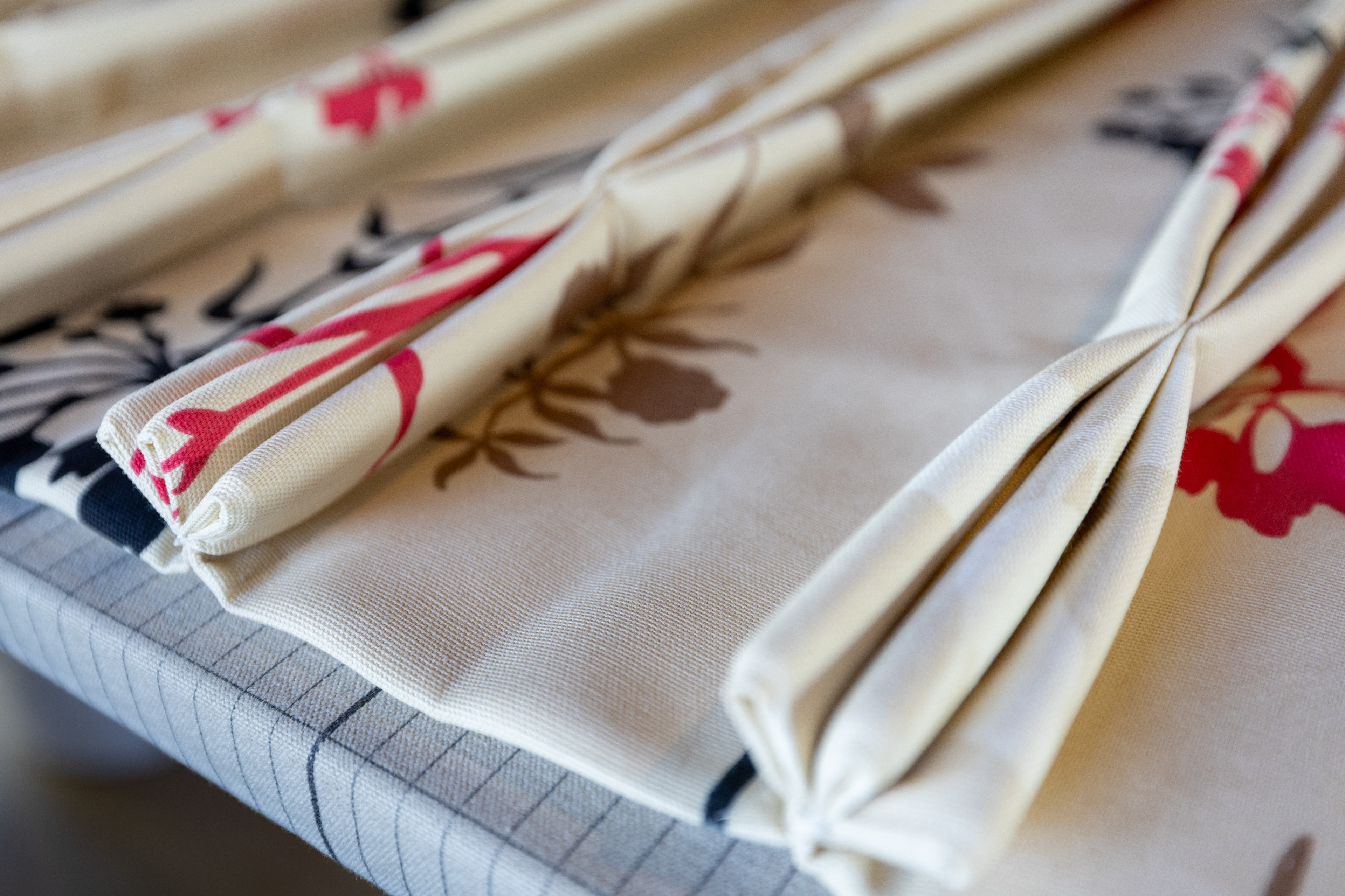 Triple French Pleat heading on a Cameron Fuller Round 38 track